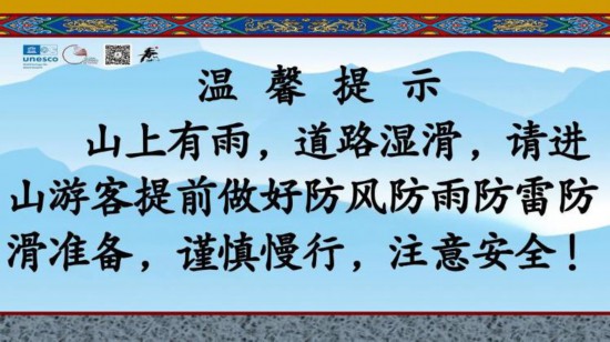 汛期已至,天氣多變,建議密切關注天氣變化(“泰山景區(qū)”微信公眾號每日頭條有天氣預報鏈接)和景區(qū)預警信息,主動做好防雨防雷電防地質災害準備,理性出行、安全游覽。雨后泰山,道路濕滑,務必小心慢行、遠離危險區(qū)域,不擅自進入危險地帶、非游覽區(qū)等,不在十八盤及山崖、瀑布、河道等險要地段逗留。如遇極端惡劣天氣、身體不適等,請立即暫停游覽,并按照工作人員的指引就近避險、休息。另外,游客集中上山下山等時段,請自覺維護通行秩序,靠右行走,不在人流中突然停下或逆行,確保通行順暢。泰山實行全年全域森林防火,請勿攜帶火種、危險品、管制物品等進山,請勿在景區(qū)內吸煙、用火。