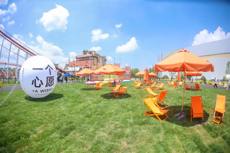 為了更好的貼合到年輕人尋求“釋放、放空”的消費情緒,項目團隊在美陳細節(jié)上也處處用心:摩天輪音樂派對入口是賽博風巨型燈組,以天籟使者為重點打造的系列硬核造型與炫酷的燈光,營造出滿滿的未來科技感;派對現(xiàn)場,提前種植鋪設千余平真實草坪,并布置天幕、躺椅及萌寵氣模,以及夏日微醺、炫酷國潮、落日美食等各種主題市集,讓游客盡享愜意……