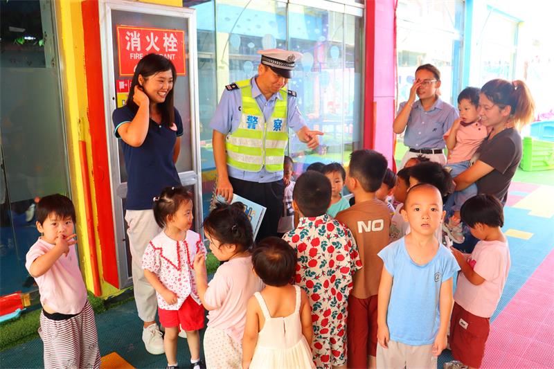 為進(jìn)一步加強(qiáng)暑期兒童的交通安全意識和自我安全防范能力,引導(dǎo)幼兒自覺養(yǎng)成遵守交通規(guī)則的良好交通行為習(xí)慣。近日,山東省嘉祥縣公安局交警大隊走進(jìn)轄區(qū)幼兒園開展“平安快樂過暑假 交通安全不放假”主題交通安全宣傳活動,守護(hù)幼兒平安出行。