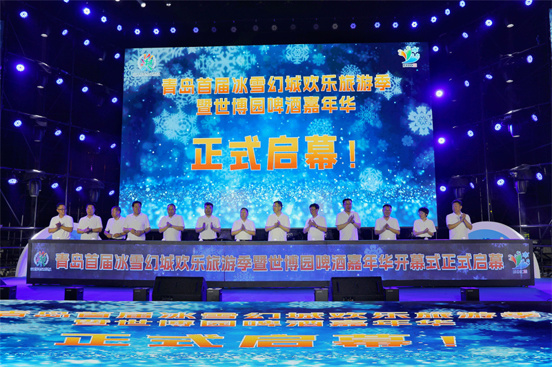 7月31日晚,青島首屆冰雪幻城歡樂旅游季暨世博園啤酒嘉年華開幕儀式在青島世博園景區(qū)中心廣場正式啟幕。