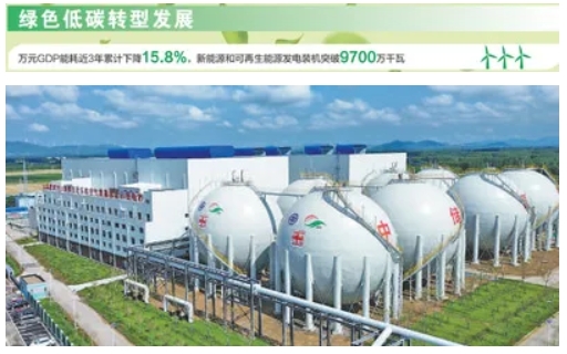 推動綠色低碳轉(zhuǎn)型發(fā)展。深入推進(jìn)降碳、減污、擴(kuò)綠,萬元GDP能耗近3年累計下降15.8%;新能源和可再生能源發(fā)電裝機(jī)突破9700萬千瓦,PM2.5平均濃度近3年下降19%,地表水國控斷面優(yōu)良水體比例達(dá)83.7%。
