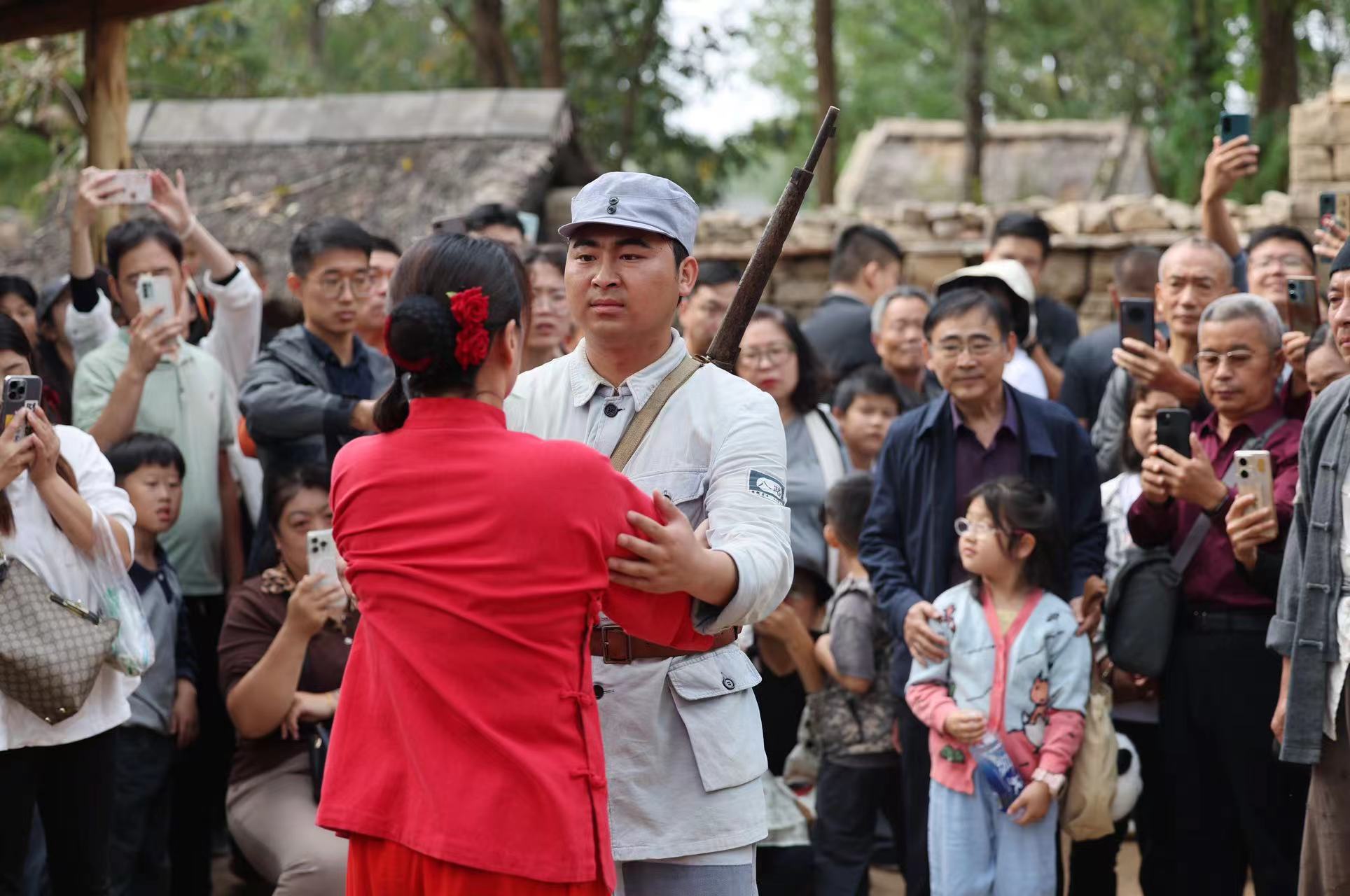 2024年10月13日,在山東省臨沂市沂南縣馬牧池鄉(xiāng)紅嫂家鄉(xiāng)旅游區(qū),演員在情景劇《永遠(yuǎn)的新娘》中表演。