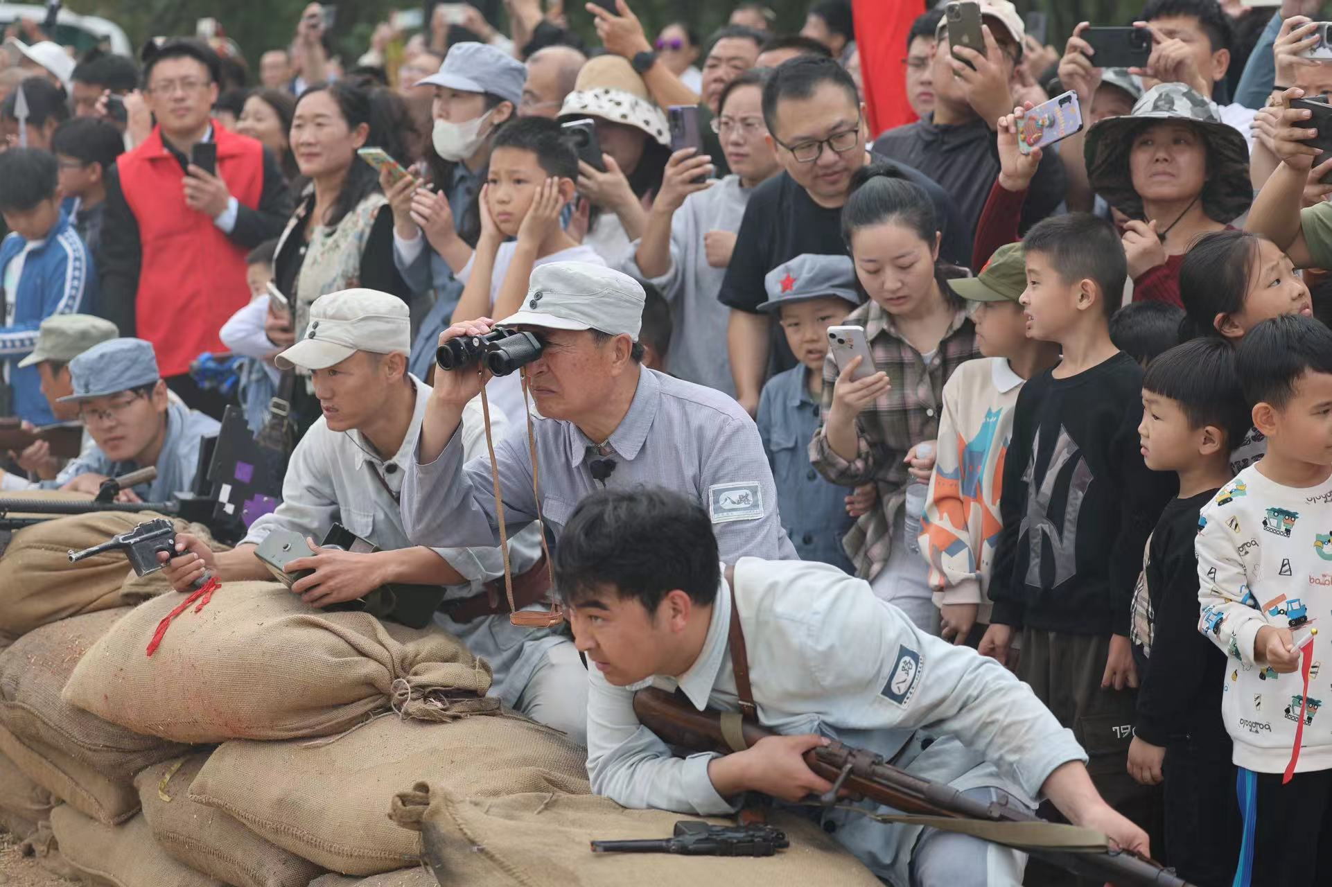 游客參與情景劇《跟著團(tuán)長(zhǎng)打縣城》演出。