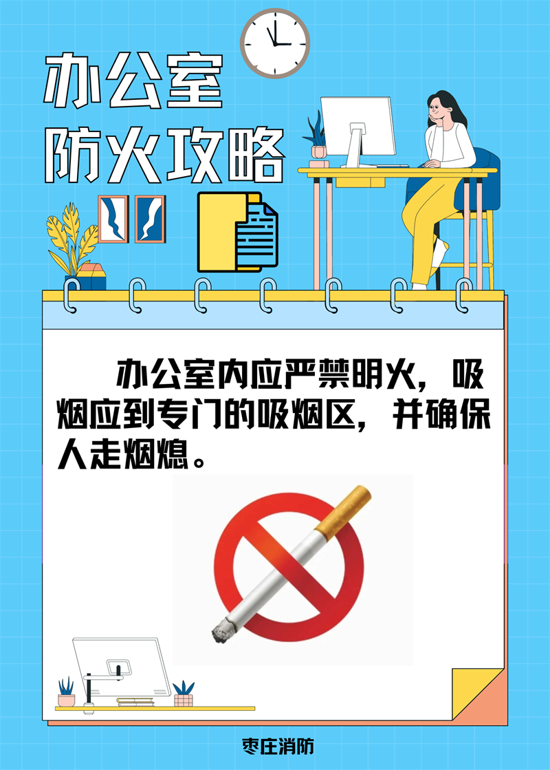 辦公場所用電設(shè)備較多,切記插排不要插入過量電器,避免復(fù)合用電,使用完及時關(guān)閉,辦公場所禁止吸煙,下班前要記得人走電斷。