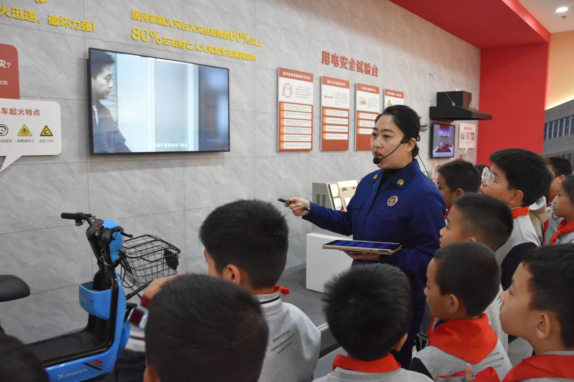 講解員詳細(xì)介紹了家庭火災(zāi)、學(xué)?;馂?zāi)、農(nóng)村火災(zāi)、公共場所火災(zāi)、化工和其他重要、特殊場所火災(zāi)的特點及預(yù)防手段。針對常見的家庭電氣火災(zāi)隱患,如電動車起火、取暖設(shè)備“小太陽”起火、廚房燒水致燃?xì)庑孤┑龋v解員以實物演示,手把手教隊員如何在火災(zāi)初起開展正確處置。在互動屏幕、搶答游戲環(huán)節(jié)中,每一位隊員都變身答題小明星積極參與。