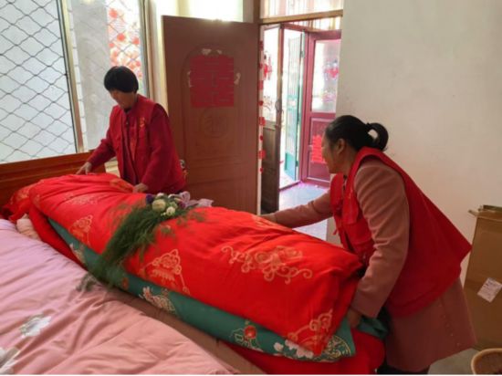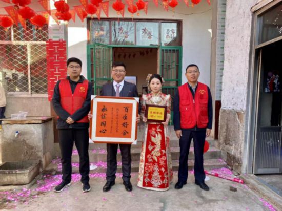 11月2日凌晨四點,天還未亮,沂水縣龍家圈街道崮安村的喜事新辦志愿者們身著紅色馬甲,帶著電子鞭炮,齊聚新人趙同洋和王靜家中。他們分工協(xié)作,打掃衛(wèi)生、整理床鋪、布置婚禮現(xiàn)場。村黨支部書記作為證婚人,為新人送上祝福?!盎槎Y辦得熱熱鬧鬧,還不鋪張浪費,給我們這個小家庭省了2萬多元,真是面子里子都有了。”趙同洋對這場婚禮贊不絕口,現(xiàn)在村里年輕人辦婚禮基本都這樣,既節(jié)省了開支又避免了攀比。