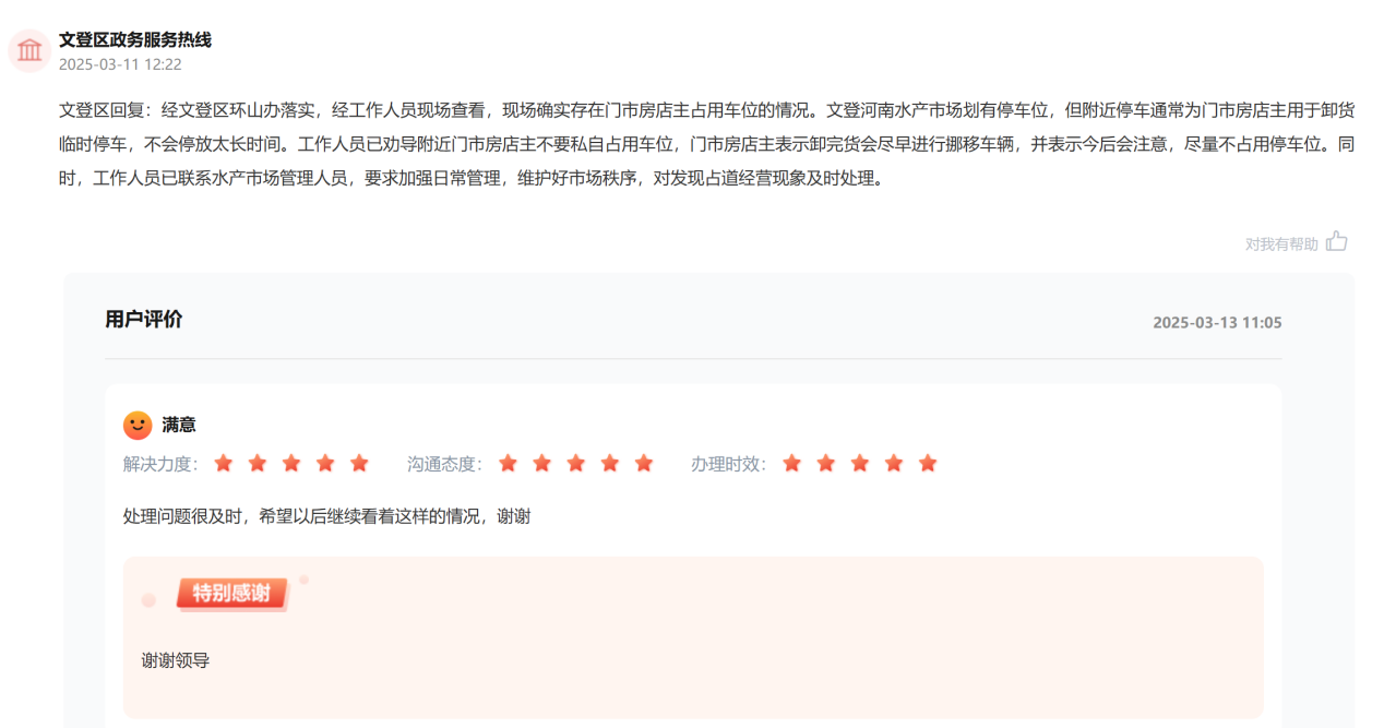 反映的問題引起重視并得到解決,網(wǎng)友對此給出了五星好評。