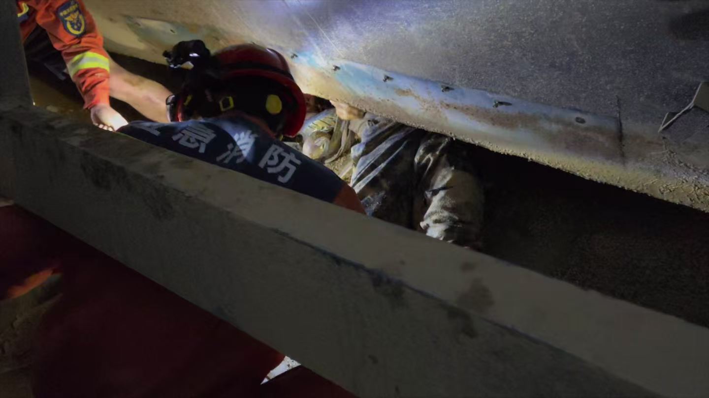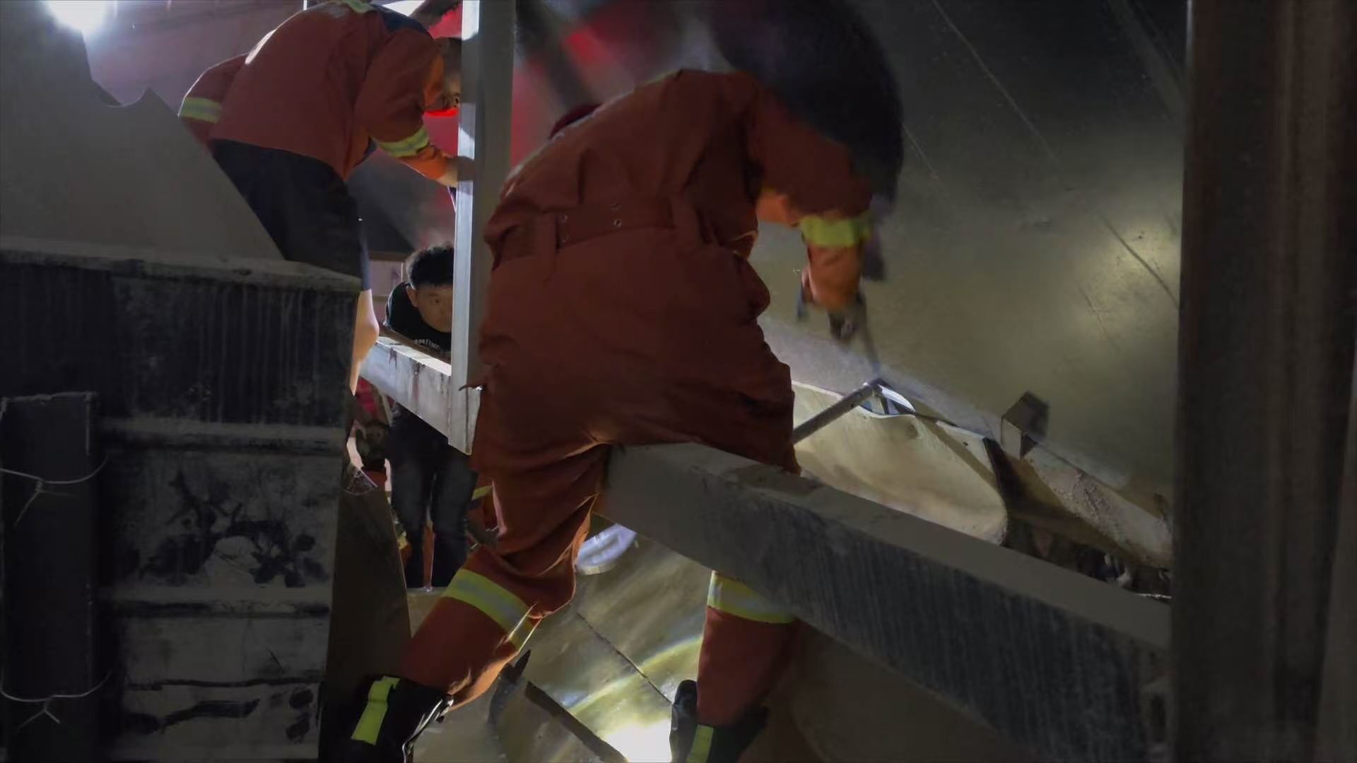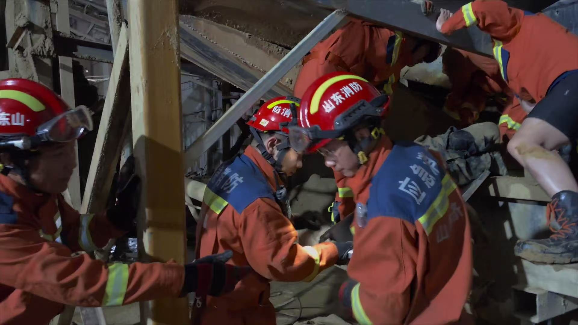 山東濟南:工人不慎卷入碎沙機 消防員緊急營救