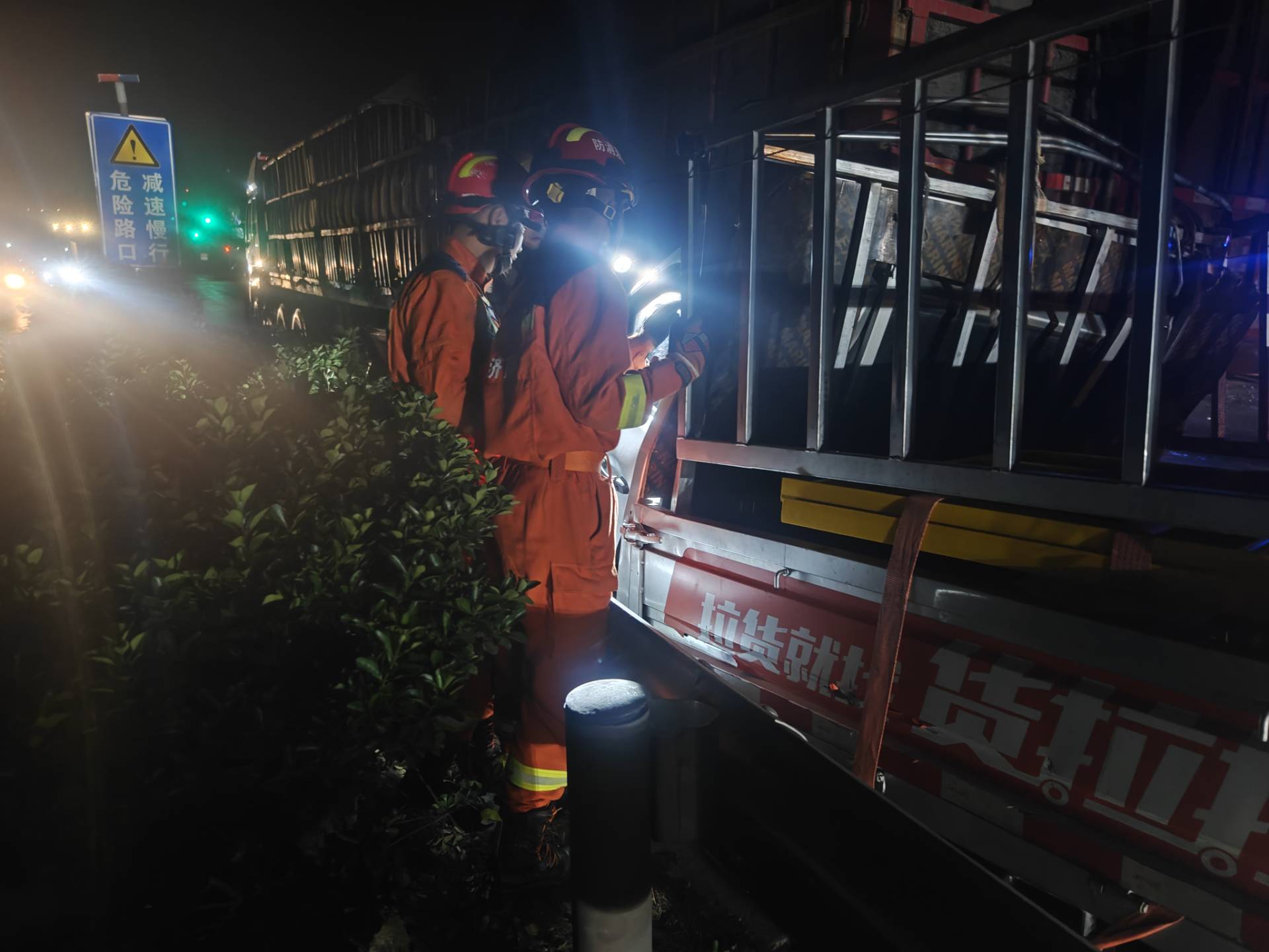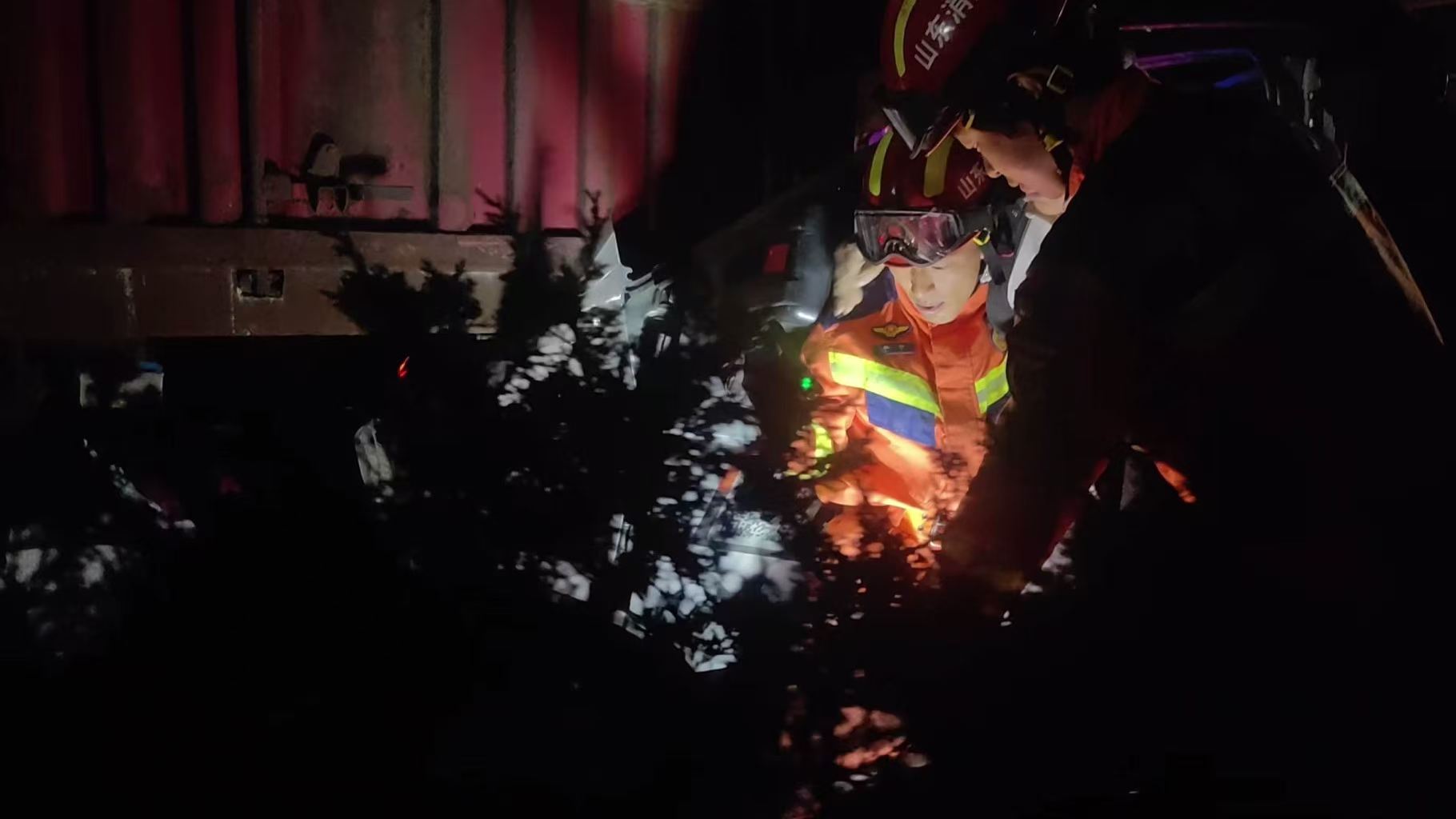 山東濟南:高速三車追尾致人員被困 消防員緊急救助
