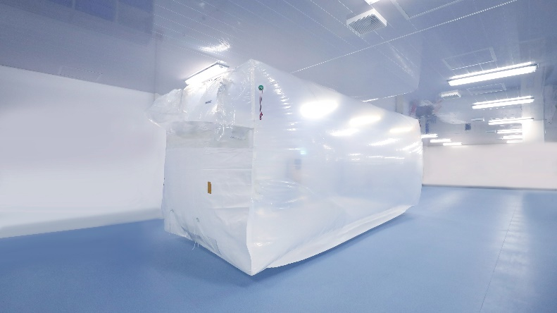 穿戴好一次性防護(hù)服、鞋套、頭套,手部檢測,從頭到腳全副武裝后,采訪團(tuán)得以進(jìn)入產(chǎn)業(yè)園車間。