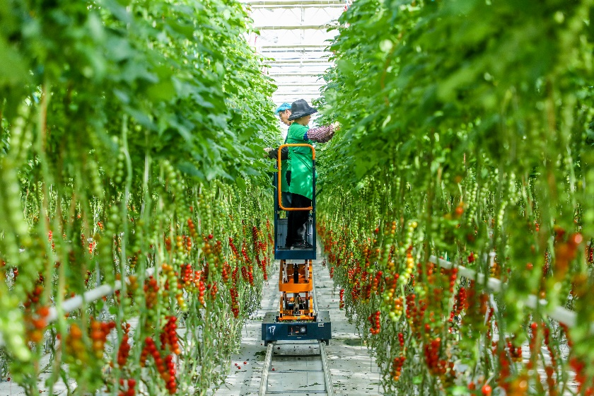 在占地200畝的玻璃溫室內(nèi),一串串櫻桃番茄在精準(zhǔn)調(diào)控的環(huán)境中茁壯生長。集團(tuán)常務(wù)副總經(jīng)理馬鐵軍介紹:"依托自主研發(fā)的數(shù)字孿生系統(tǒng)和智能化生產(chǎn)設(shè)備,可實(shí)現(xiàn)對溫、光、水、氣、肥的精準(zhǔn)智能化調(diào)控,直接將農(nóng)業(yè)生產(chǎn)與供應(yīng)鏈服務(wù)進(jìn)行鏈接,每年可實(shí)現(xiàn)連續(xù)10個月采摘,櫻桃番茄日產(chǎn)量達(dá)40余噸,產(chǎn)量是傳統(tǒng)大棚的6-8倍。"