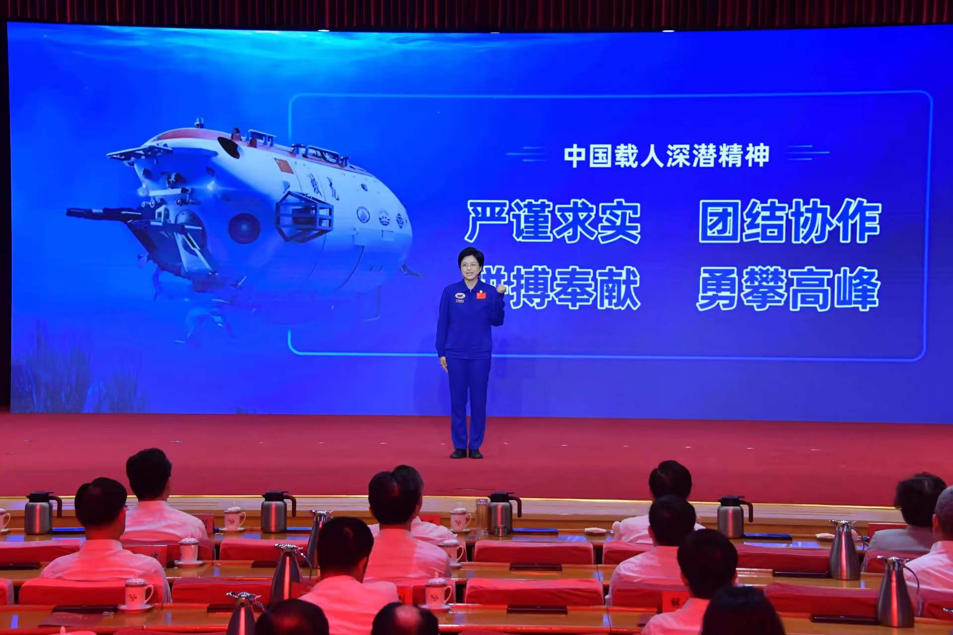 “蛟龍”號是我國首臺(tái)自主設(shè)計(jì)、自主集成研制的作業(yè)型深海載人潛水器。國家深?;毓芾碇行臐摵絾T、高級工程師張奕講述了“蛟龍?zhí)枴眻F(tuán)隊(duì)勇創(chuàng)深海探測新紀(jì)錄,在下潛“深度”中彰顯黨性“高度”的故事,生動(dòng)詮釋了“嚴(yán)謹(jǐn)求實(shí)、團(tuán)結(jié)協(xié)作、拼搏奉獻(xiàn)、勇攀高峰”的中國載人深潛精神。