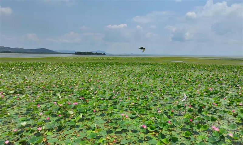 東平湖荷花的花期從6月持續(xù)至9月,接下來將迎來繁花似錦的盛景。近年來,當(dāng)?shù)爻掷m(xù)推進(jìn)生態(tài)保護(hù)與修復(fù)工程,東平湖的生態(tài)環(huán)境愈發(fā)優(yōu)越,成為了動(dòng)植物的天堂,也讓這片荷海愈發(fā)嬌艷動(dòng)人。