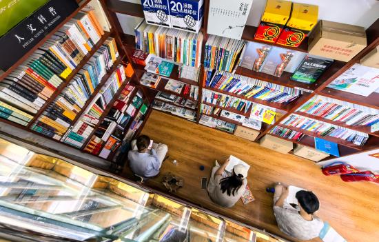 2025年7月22日,在山東省樂陵市新華書店,孩子們?cè)陂喿x圖書。