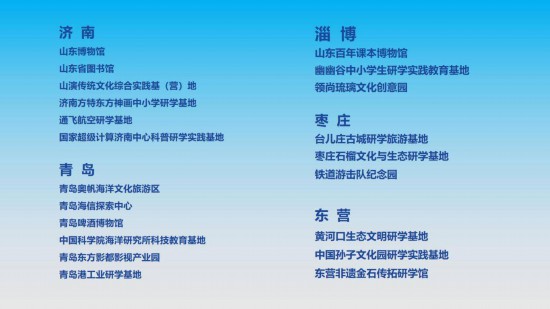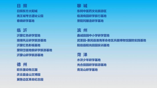 活動(dòng)現(xiàn)場公布山東省首批研學(xué)旅游基地品質(zhì)提升試點(diǎn)的60家單位名單。按照文化和旅游部《關(guān)于組織開展研學(xué)旅游基地品質(zhì)提升試點(diǎn)工作的通知》要求及山東省相關(guān)工作細(xì)則,試點(diǎn)提升工作期為2年,其間省文化和旅游廳將組織專家開展全流程跟蹤指導(dǎo),著力打造一批特色突出、市場認(rèn)可、口碑過硬的品牌研學(xué)旅游基地。