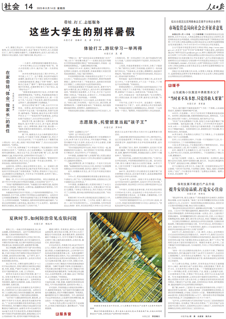 人民日報 | 威海一攤主激浪中勇救落水父子, “曾是消防員,常備救生物品”