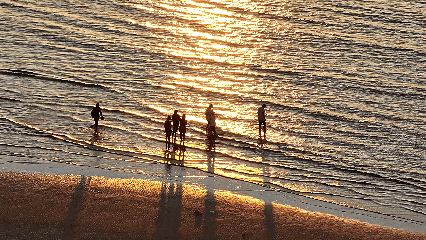卷起褲腳在石間尋找小螃蟹和小海螺
