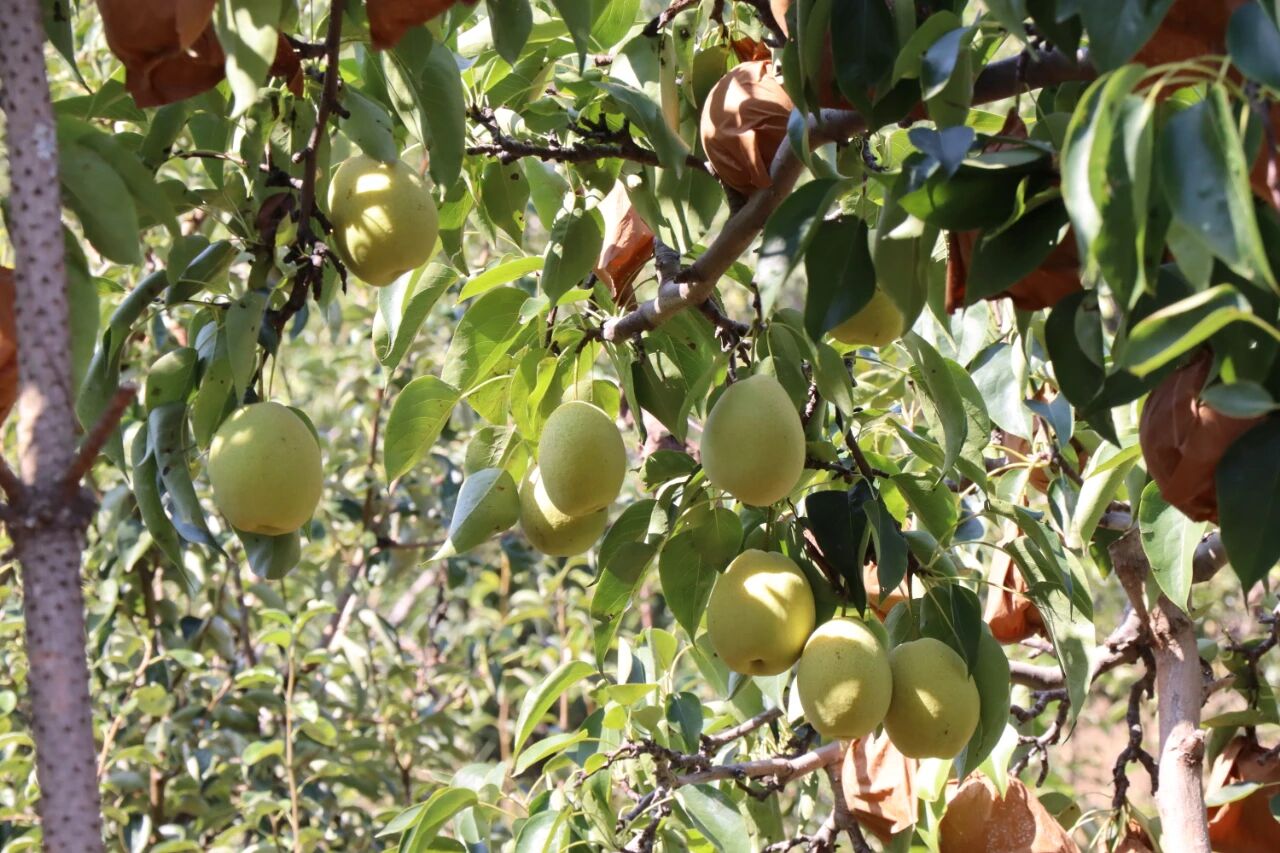 長(zhǎng)把梨掛滿(mǎn)枝頭,青黃相間