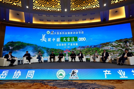 隨后,舉行了大型系列全媒體訪談節(jié)目《美麗中國大家談》(泰山篇)。中國風(fēng)景名勝區(qū)協(xié)會會長張永利,國務(wù)院發(fā)展研究中心資源與環(huán)境政策研究所副所長、研究員常紀(jì)文,中國文藝志愿者協(xié)會副主席、周恩來總理扮演者、中國風(fēng)景名勝區(qū)協(xié)會形象大使劉勁,泰山風(fēng)景名勝區(qū)黨工委書記孫磊,恒山風(fēng)景名勝區(qū)管理中心黨委書記、主任曹啟龍,嵩山風(fēng)景名勝區(qū)黨工委副書記、管委會主任魏瑋,黃山風(fēng)景區(qū)黨工委委員、管委會副主任江懋,華山風(fēng)景名勝區(qū)黨工委委員、管委會副主任馬耀峰,南岳區(qū)人民政府副區(qū)長胡融峰等嘉賓,與中央廣播電視總臺主持人劉棟棟一起,聚焦“山岳協(xié)同、產(chǎn)業(yè)共贏”,探討如何推動風(fēng)景名勝區(qū)高質(zhì)量可持續(xù)發(fā)展。