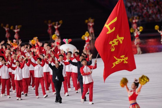 11月9日20時(shí),中華人民共和國(guó)第十五屆運(yùn)動(dòng)會(huì)開幕式在廣東奧林匹克體育中心舉行。各參賽代表團(tuán)代表入場(chǎng),山東省代表團(tuán)亮相,獲得掌聲與歡呼。