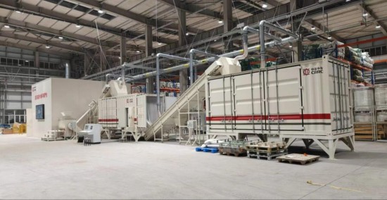 該移動(dòng)工廠大小與標(biāo)準(zhǔn)集裝箱差不多,可直接進(jìn)駐風(fēng)場(chǎng)或葉片貯存地,通過(guò)“分散式預(yù)處理+集中式深度加工”的雙模式運(yùn)作,突破傳統(tǒng)固定式處理產(chǎn)線的局限,極大提升規(guī)模化作業(yè)效率。