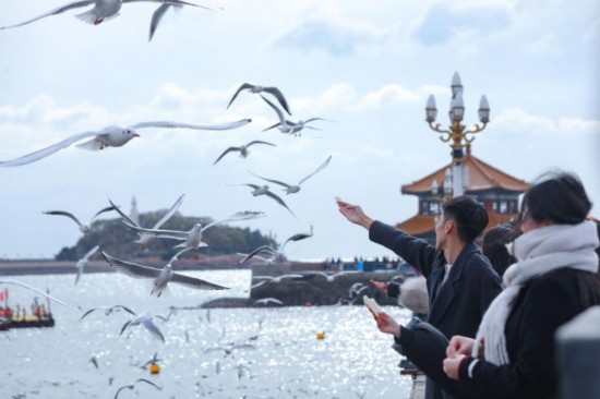 2025年11月17日,山東省青島市正式開啟海鷗季。位于山東省青島市市南區(qū)的棧橋景區(qū)海鷗云集,游客喂鷗賞鷗其樂融融。