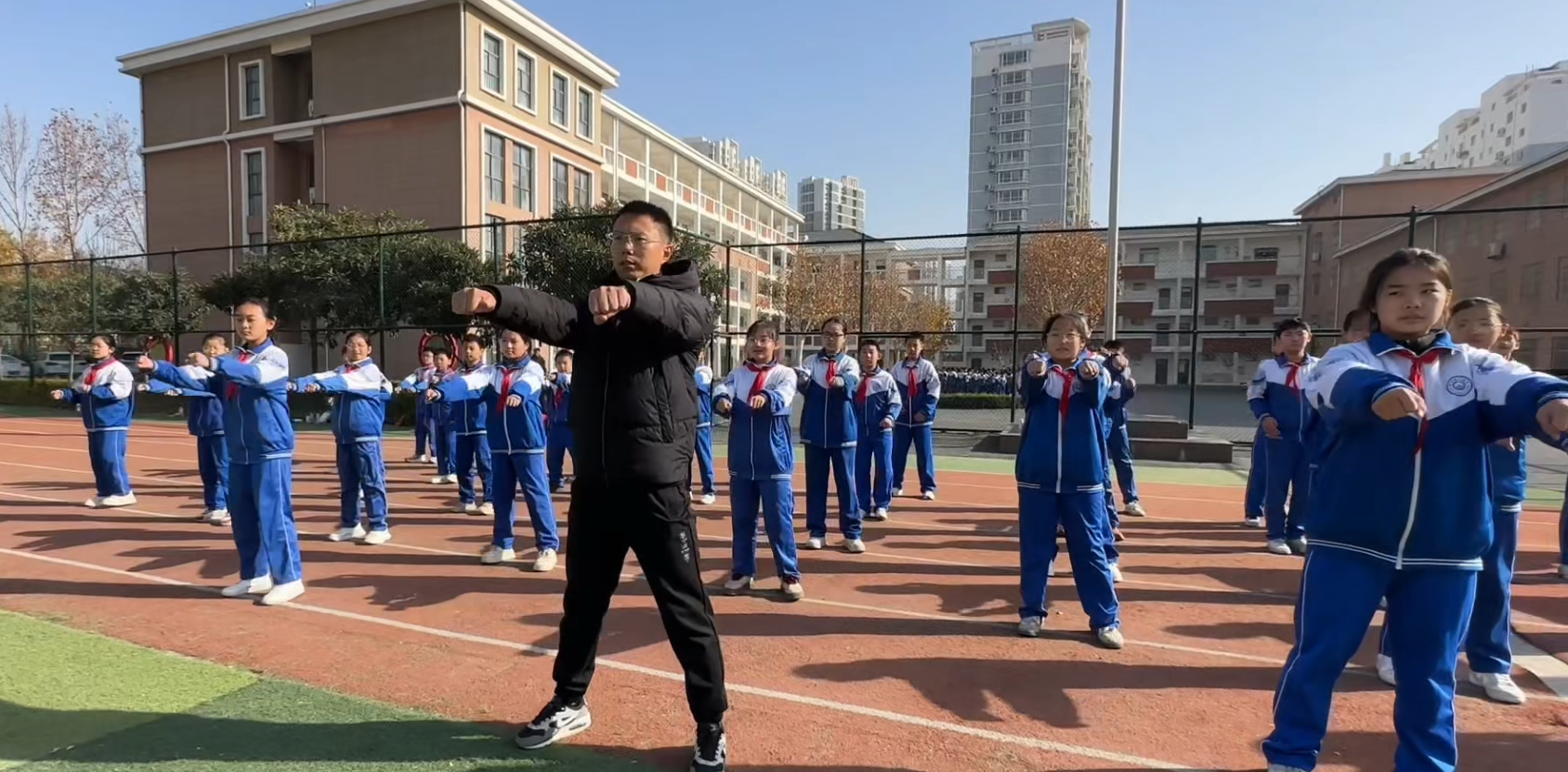 “五育并舉,體育為首”是魯西新區(qū)廣州路小學的育人共識。體育課作為踐行理念的主陣地,成為學生的“核心能量站”。武術操展演氣勢如虹,足球場上奔跑角逐,跳繩翻飛輕盈律動——體育老師的專業(yè)指導下,孩子們不僅掌握科學鍛煉方法,更在體能挑戰(zhàn)中磨礪意志,逐步養(yǎng)成“愛運動、懂健康”的好習慣,為身心健康筑牢根基。