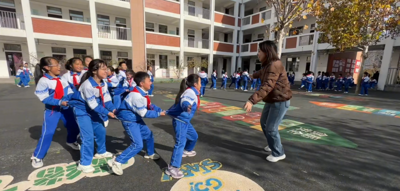 十分鐘課間則是藏著智慧的“微型能量補給站”。學校精心打造的五彩地面游戲區(qū),設置了音節(jié)跳房子、安全與科技主題飛行棋等特色項目。孩子們在有限空間里盡情嬉戲,既釋放了課后活力,又在游戲中鞏固知識,為接下來的學習加滿能量,讓“以體賦能”融入每一個碎片化時光。