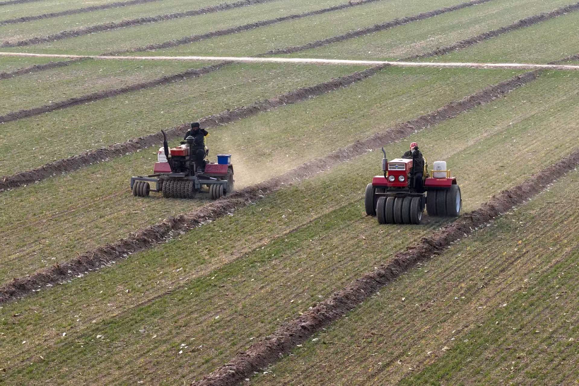 12月11日,在山東省聊城市茌平區(qū)杜郎口鎮(zhèn)袁莊新村,農(nóng)機(jī)手駕駛農(nóng)機(jī)進(jìn)行麥田鎮(zhèn)壓作業(yè),提高小麥保暖防凍能力。馬紅坤攝
