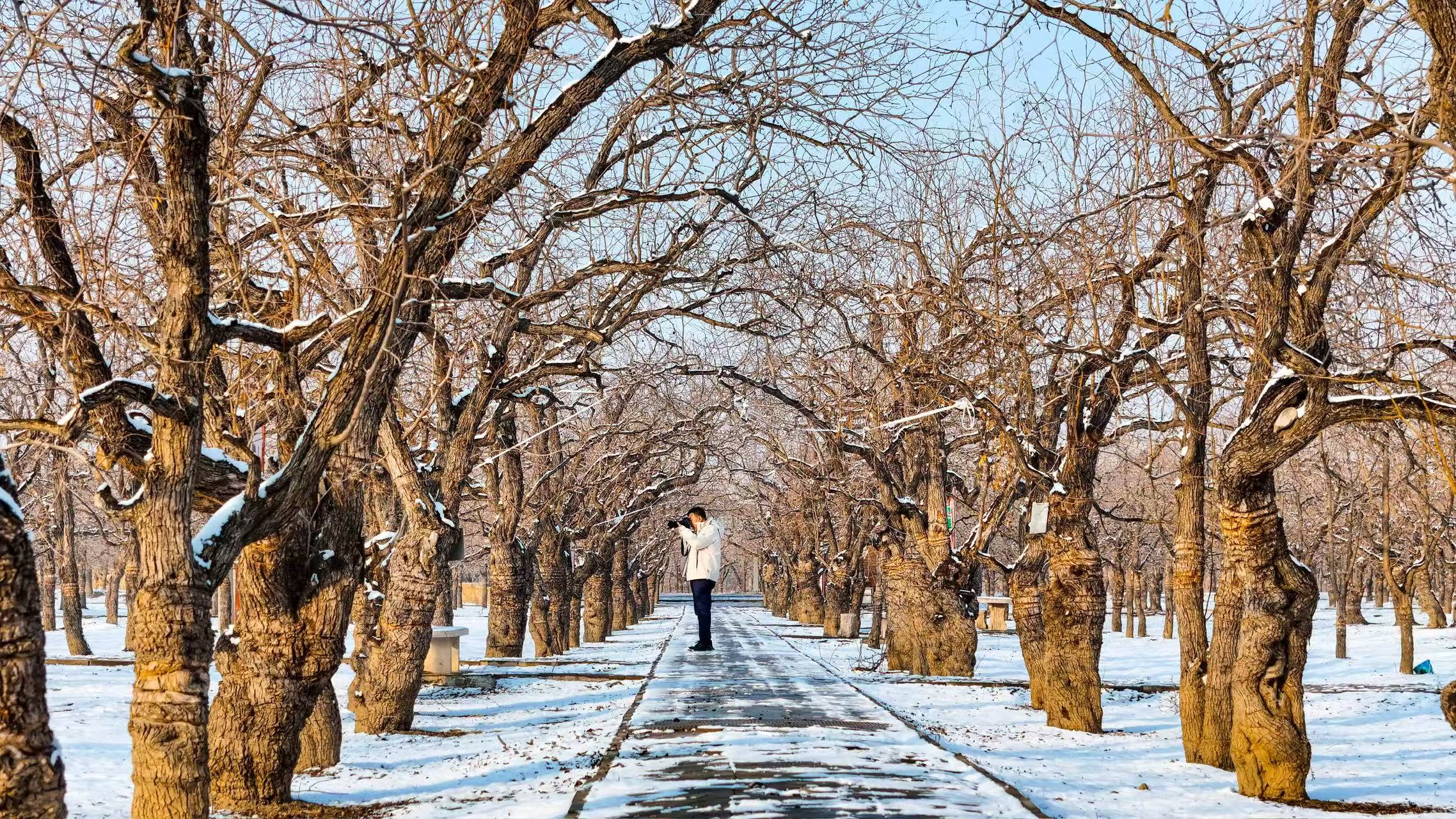 12月13日,山東省樂陵市迎來入冬以來的第一場雪。落雪后的樂陵影視城、千年棗林等各大景區(qū)銀裝素裹、浪漫靜謐,美不勝收!(賈鵬)